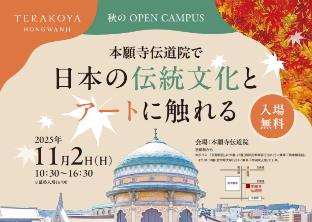 本願寺の僧侶“お西のお坊さん”がガイドとなって本願寺の境内および門前町を案内する特別なツアーです。参加をご希望の方は、開場時(10:30)に整理券を配布します。定員に達し次第、配布を終了いたします。